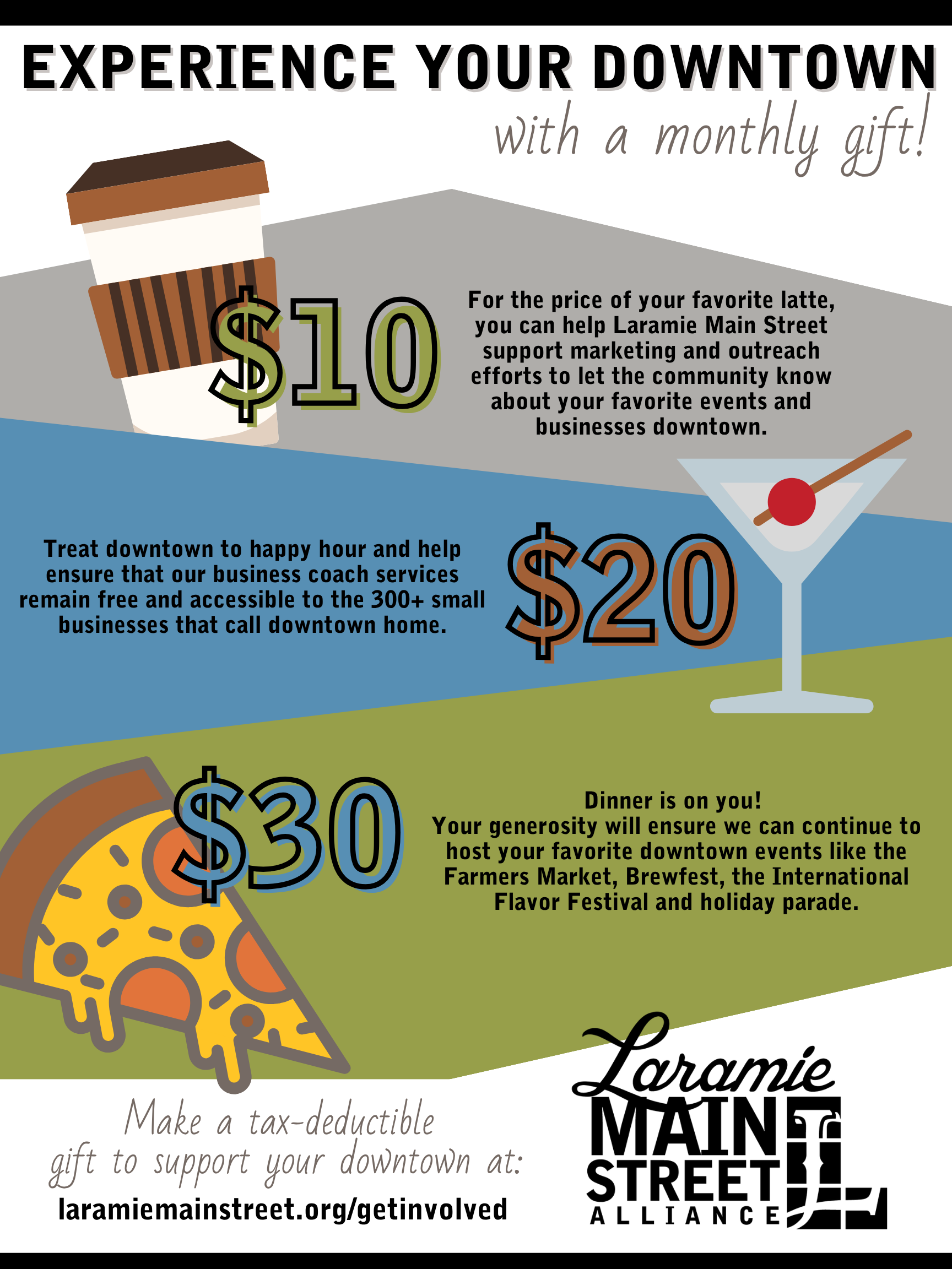 You may have received an email from downtown or seen our testimonials on social media about the importance of Laramie Main Street, and how we are celebrating more than 20 years of work downtown. We have a successful record of supporting businesses and creating a welcoming, vital atmosphere for our community, but there is still much work to be done. We are really proud of what we’ve been able to accomplish as a non profit in this short time, and as a donor, we know you are too.